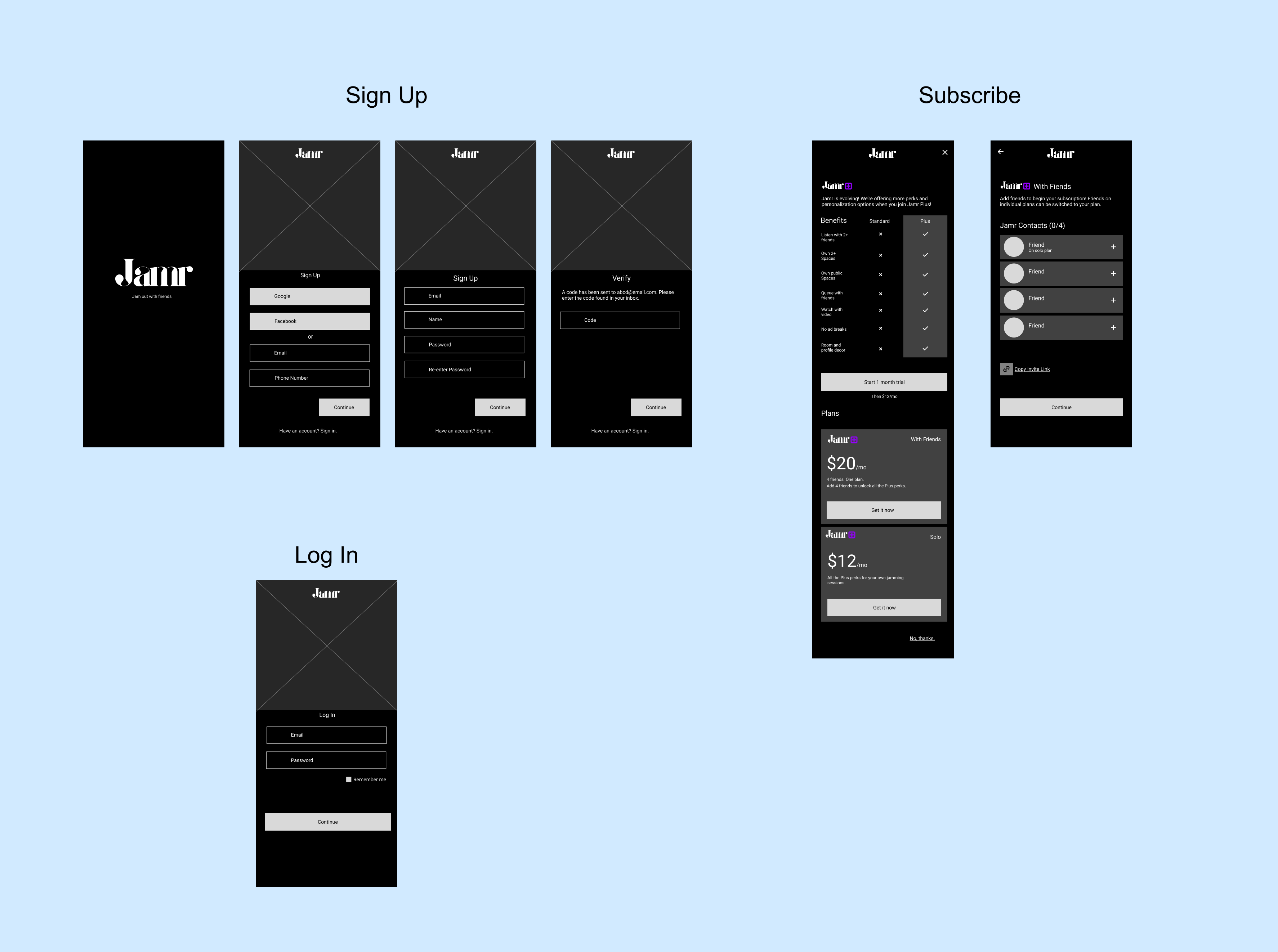 As previously stated, other key features for Jamr, like the Discovery and search function, are not included in the final product solution as only the items related to Jamr Plus subscription are to be developed.