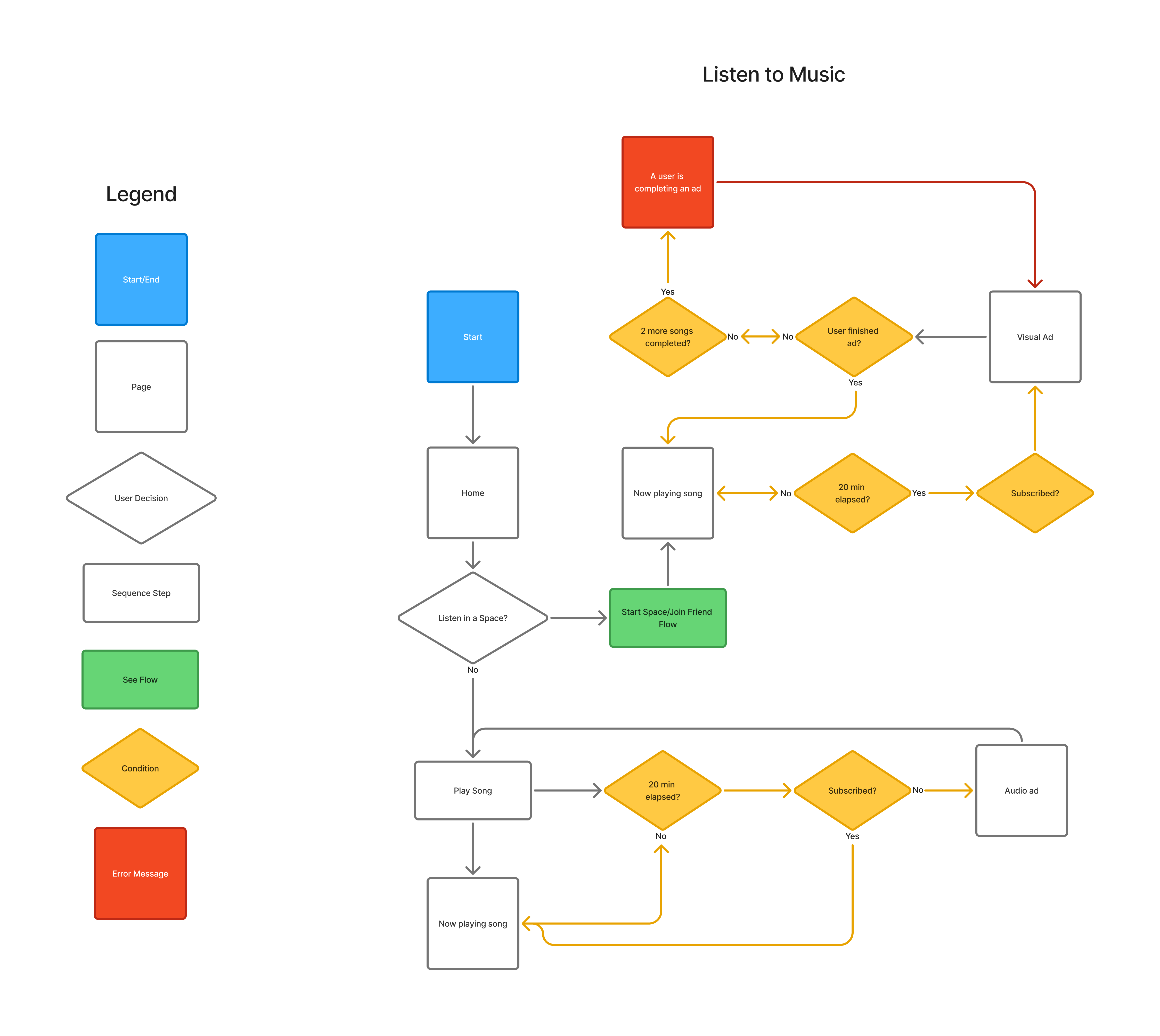Listen to Music Flow - Sequence of sponsorships playing and completion.